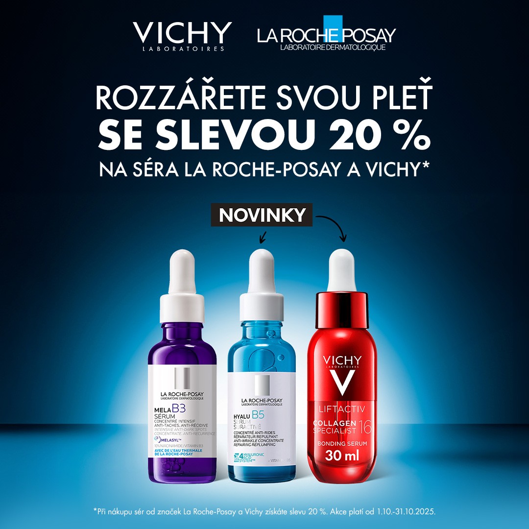 Séra značek VICHY a La Roche-Posay dostanete se slevou 20 %, včetně novinek.