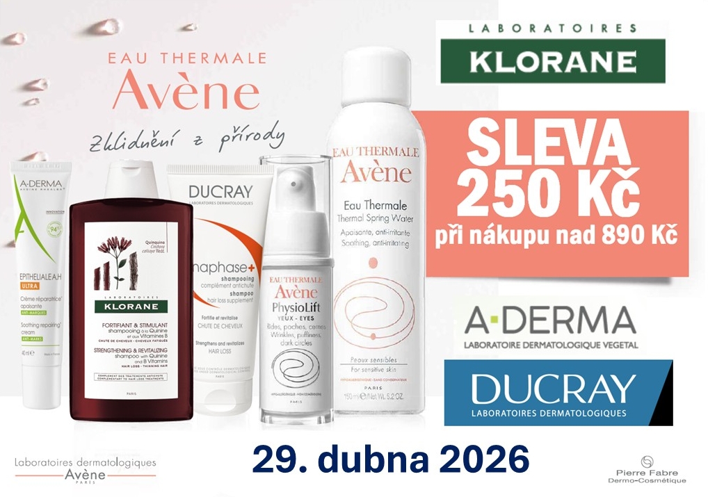 Na kosmetiku AVENE dostanete slevu 250 Kč při nákupu nad 890 Kč až do konce dubna.